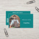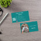 A teal, green coloured background. Personalise and add your title, business name/name and text on front. White text. An arch shaped photo frame.