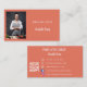 A terracotta coloured background. Personalise and add your photo, title, business name/name and text on front. White text.