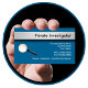 Private investigator business cards in a modern template design that includes a magnifying glass. Best business cards for themes related to private investigator, security, law enforcement, or private detective.