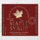 Private Reserve Maple Syrup Red Gold Maple Leaf Liquor Bottle Label