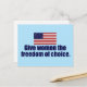 Give women the freedom of choice in America. It's our civil right. Every woman deserves the right to choose. Pro choice postcards with the American flag.