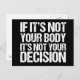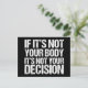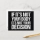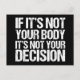 Strong pro choice quote: If it's not your body, it's not your decision. A nice feminist prochoice advocate postcard that supports women's access to good healthcare. It's my body and my choice, support a woman's right to choose. Nobody likes abortion, but everyone deserves the choice.