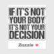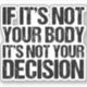Strong pro choice sticker with the following quote:  If it's not your body, it's not your decision. A nice feminist prochoice advocate gift that supports women's access to good healthcare. It's my body and my choice, support a woman's right to choose. Nobody likes abortion, but everyone deserves the choice.