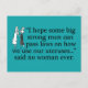 Funny pro choice quote by two funny feminist women in a vintage cartoon strip postcard. " I hope some big strong men can pass laws on how we use our uteruses" said no woman ever.