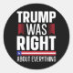 Pro Donald Trump Trump Was Right About Everything Classic Round Sticker
