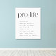 A pro-life's definition and perspective as it pertains to my body my choice and the choice you can make for life. Black font on white background canvas wall art.