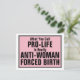 Pro-Life is Anti-Woman Forced Birth Postcard