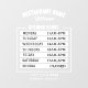 A simple custom business opening hours vinyl window cling decal sign template in a modern minimalist style on a black background. This versatile template allows you to easily design a custom opening times list for your store, salon, restaurant, cafe or any other business. Need help? Feel free to contact me using the message button. I am happy to help with your personalisation, additional items or custom orders.