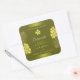 Make a lasting impression with this elegant and exotic product label design featuring cute yellow hawaiian flowers and palm leaves on a mustard background. A cool palm leaf shadow matching to the shimmery yellow border frames.