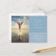 Photo Advertising Postcard - two tone in ANY colour! designed by HAMbyWhiteGlove - Just choose the personalise option and be sure to fill in or blank out each field, both front and back. The photo may be used, or you may use your own. This is a softened look photo template. Be sure to double check your finished product. Choose customise to change the background and/or text colours. Call HAMbyWG203-302-0337 for help with this product, custom work or reorders. The image shown is of a woman standing on the beach with her arms stretched out holding a scarf.