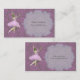 Business cards featuring a vintage illustration of a pink ballerina with a retro wallpaper style background.