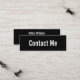This mini black business card says 'contact me' on the front of the business card. The back has four lines of display text for your name and contact information such as your phone number, email address, and/or social media handle. All text can be edited or deleted.