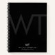 A professional black business notebook that can be customise with your monogram initials and details. Ideal design for the office, home, gift etc.