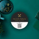 A Professional black and white notary QR code sticker that features a golden crossed skeleton key and pen icon and the notary name on a black background and the custom QR code.