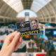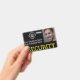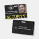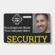 This custom identification badge features a "SECURITY" title printed in yellow across the bottom portion over a black background. A sample security guard photo is placed on the right which you can personalise to include your own photo ID. A sample company or business logo is placed on the left, followed by an employee and company name.