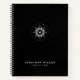 Modern notebook features a minimal design in a classic black and white colour palette. Custom name presented in the lower thrids in stylish simple font with a complimentary minimal monogram silver star medallion.