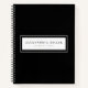Stylish notebook features a minimal design in a classic black and white colour palette. Custom name and title, role or subject presented in a black and white frame.