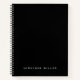 Modern notebook features a minimal design in a classic black and white colour palette. Custom name presented in the lower third in stylish simple font.