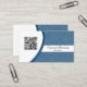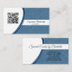 A faux blue glitter sets off the background of this business card design featuring template name and title on the right with QR Code placeholder on the left side. The back includes a coordinated color design with text fields for the business name and details. Replace the placeholder with your QR code on the front. Fill in the template fields or click customize to select a font style, size, and color you like. Use your QR code to sent customers to your website, reviews, photos or other special page.