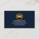 Overleaf, in a dark blue cover, the gold logo is at the top followed by your prestigious name, contact details and a slogan option to publicise your services.