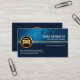 A water drop design with a lower dark blue layer is accentuated by a gold line that passes through a gold auto car logo you can use. Above the gold line lies your prestigious name and job title with a slogan caption option just underneath. ; You can change the caption remarks to the slogan to suit your own publicity needs. At the lower left corner, you can find the contact details.