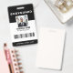 The badge displays a company or agency name, logo, security staff photo, name, and designation. The layout is clear and easy to read, even at a distance.