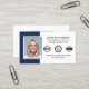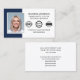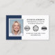 Make a professional impression with this contemporary business card design. Easily personalise it with your photo, name, job title, address, and contact details. Space is provided for your logo and two accreditation logos. All the text and images can be customised or deleted to suit your business needs. Printed colours: dark blue, black and white.
