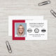 Make a professional impression with this contemporary business card design. Easily personalise it with your photo, name, job title, address, and contact details. Space is provided for your logo and two accreditation logos. All the text and images can be customised or deleted to suit your business needs. Printed colours: red, black and white.