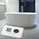 A stylish white modern business logo, QR code and text design perfect for any décor. A trendy personalised bath mat ideal for business bathrooms, resorts, hotels, office bathrooms, rental properties etc.
