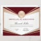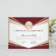 This modern professional certificate of achievement award features red and beige colour tones, and a subtle white & grey gradient background. Includes a medal award with red stars. Personalise to your liking.