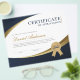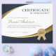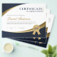 Blue and gold professional certificate of appreciation award template includes a gold medal.
