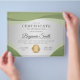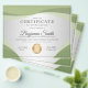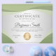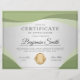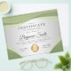 Professional certificate of appreciation award flyer features soft green wave shapes, light grey background & a shiny gold medal.