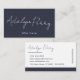 Make lasting impression with this chic and professional business card design. Featuring bold navy background on one side with your name in elegant script, it creates a sophisticated yet approachable look. The reverse side offers clean white layout with your name, title, and contact details neatly arranged for easy readability. Perfect for entrepreneurs, freelancers, consultants, or creatives, this design balances elegance and modern minimalism. With customisable text fields, you can easily update your name, title, website, email, phone, and social media handle to suit your business needs.