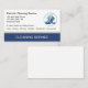 Cleaning business cards in a simple modern style with cleaning supplies graphic and classic business card editable layout. Designed as a business card template for a house cleaning service, house maid, or housekeeper.
