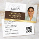 Make a great first impression with these stylish personalised business cards! An elegant template with your ID photo, name, job title, company logo, contact information, and a scannable QR code. All of the text can be customised or deleted to suit your business needs. This adaptable design would suit many different professions, including corporate employees, real estate agents, notary public, loan signing representatives, small enterprises, and more! Printed colours: dark nut brown and white with a gold gradient.