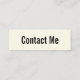 This mini cream business card says 'contact me' on the front of the business card. The back has four lines of display text for your name and contact information such as your phone number, email address, and/or social media handle. All text can be edited or deleted.