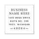 A professional custom branded self inking rubber stamp design for your business features the name of the company with return address in classic and elegant style typography.