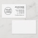 Modern and contemporary add your own custom logo business cards featuring template fields for your name, company name or title and contact information on the right, and your logo on the left. Black text on white background.
