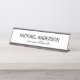 This desk name plate features name in black modern sans serif font style and title in black modern script font style on white background.