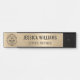 Elevate your office or workspace with this sleek door sign design, featuring a sophisticated brushed gold metallic background that radiates professionalism. The design incorporates a prominent space for your custom logo on the left, perfectly balanced with a clear and modern sans-serif font for the name and title. Framed by a slim, dark border, this design offers a refined and contemporary aesthetic, ensuring a distinguished presentation for any professional setting.
