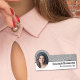 This professional name tag features template name and title in black text on a white background surrounded by faux silver glitter with a template photo in an oval on the left. Personalise the text fields or edit using the design tool to select a font style, size, and colour you prefer. Replace the placeholder photo with yours. A close-up square photograph works best. You can also add this design, where it fits appropriately, like on the luggage tag in the transfer scroll bar on this page.