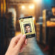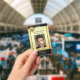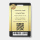 Photo ID badge featuring your custom photo and logo on a gold and black design. On the back you can add a custom bar code and/or QR code and additional texts (or delete the templates).