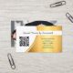 A gold with centre flair sets off the background of this business card design that features your QR code on the front and a custom photo on the back. Fill in the template fields or click customise to select a font style, size, and colour you like. Be sure to add YOUR QR code on the front and a vertical photo on the back. Use the QR code link to send customers to reviews, photos, your website or another important link.