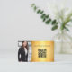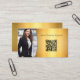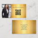 A gold with centre flare sets off the background of this business card design that features your custom photo and QR code on the front with business details on the back. Fill in the template fields or click customise to select a font style, size, and colour you like. Be sure to add YOUR QR code and a vertical photo. Use the QR code link to send customers to reviews, photos, your website or another important link.