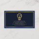 A gold rectangular frame demarcates a dark blue cover against its lighter blue rim. On the left is a large faux gold lightbulb-home logo you can use. To its right you have the business name and a slogan caption option to publicise your services. Near the base lies the contact details.
