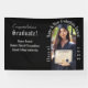 The elegant, professional design prominently features the graduate's photo within an arch setting, along with several customisable typography fields to specify the graduate's name, credentials earned, degree, graduation class year, or other personalisations. All of this is presented in the timeless classic silver and black theme. This makes a great announcement of the graduate and their accomplishment on this special day!
