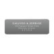 This return address label features a clean, minimalist design with a centered layout on a solid gray background. The white text is arranged in a vertical hierarchy using a modern sans-serif font, creating a professional and uncluttered look. Perfect for correspondence, the simple color palette and straightforward typography emphasize clarity and elegance, making it ideal for formal or business use.