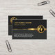 A retro grey layers column design is accentuated by a faux gold stripe near the centre of the card. Riding this gold stripe is a gold manpower logo you can use. At the upper corner you have your prestigious name and the job title. Near the base is the business name and its contact details.