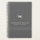 Modern professional planner features a simple grey and white design with a stylised monogram medallion in grey and white with modern typography with two complimentary white stripes to balance the overall design.