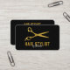 A modern gold hairdressing scissors with chic black background ideal for hair stylists or beauty salon related businesses. A simple and professional way to introduce your business. Personalise your details to create your own unique business card.